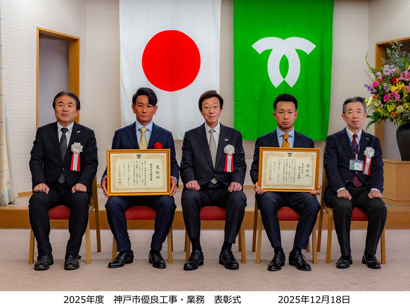 神戸市から、「令和7年度 神戸市優良工事・業務 認定」を受けました。